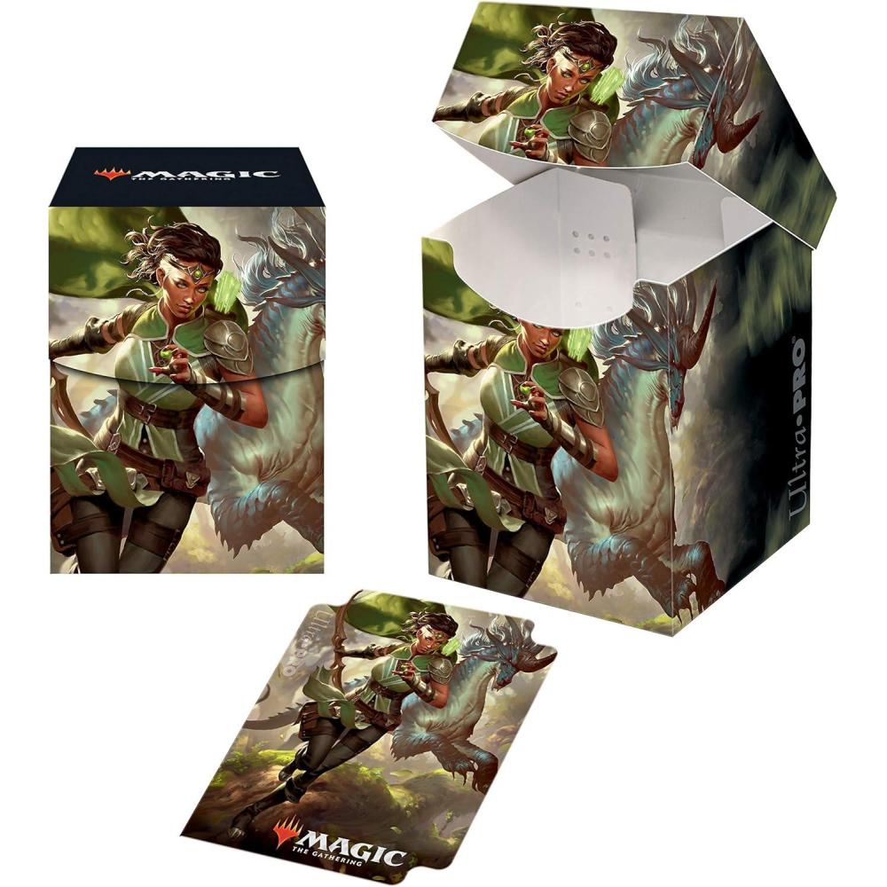 Store and protect your favorite deck with this Magic: The Gathering PRO-100+ Deck Box, sized to fit 100 standard size (2.5″ x 3.5″) gaming cards double sleeved in Ultra PRO Deck Protector sleeves. With full color printing and limited production, this Deck Box is a great addition to any MTG collection. This box is light, easy-to-carry and made with archival-safe, rigid polypropylene material. The self-locking lid design with write-on strip makes it easy to secure and identify your deck, while thumb notch sections provide easy access to cards. Each box comes with one (1) deck divider with full color artwork. # 18306 UPC: 074427183066 ASIN: B085WG9CXZ