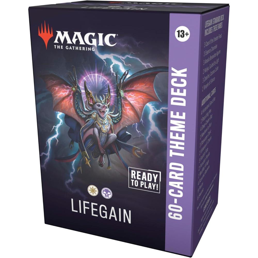 CONTENTS—1 battle-ready 60-card Lifegain theme deck, 1 deck box, 5 double-sided token cards, 1 strategy guide, and 1 reference card