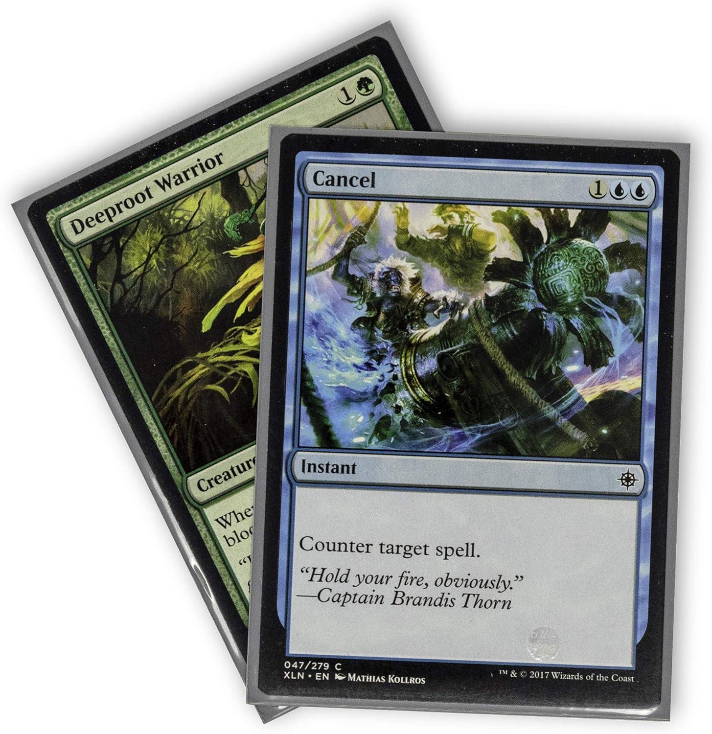 Play at your next gaming session with confidence & style Using these official Magic: The Gathering deck Protector sleeves. Made with archival-safe, polypropylene, non-PVC film, ultra PRO's deck Protector sleeves keep your valuable gaming and trading cards safe by providing a protective film layer around your card, keeping it from surface scratches and other wear & tear typically caused by game play. These sleeves are sized to fit standard cards with dimensions measuring 2.5″ X 3.5″. Non-glossy, matte clear film reduces glare on your card face during game play, making these sleeves ideal for on-camera coverage and in bright gaming halls. Made with ultra PRO's proprietary Chroma Fusion technology, these sleeves offer improved seal strength, highly detailed artwork while minimizing delamination. Each pack contains 100 individual sleeves.