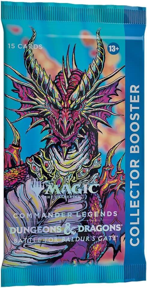 If you’re looking for the coolest, shiniest, most exciting Commander cards this side of Faerûn, look no further. The Commander Legends: Battle for Baldur’s Gate Collector Booster contains 15 Magic: The Gathering cards and 1 traditional foil double-sided token, with 2 Foil-Etched cards and 10 Traditional Foil cards in every pack. In each booster you’ll get a combination of 6 cards of rarity Rare or higher, 2–5 Uncommon cards, 3–6 Common cards, and 1 Land card. Traditional Foil Borderless Mythic Planeswalker in 1% of boosters.