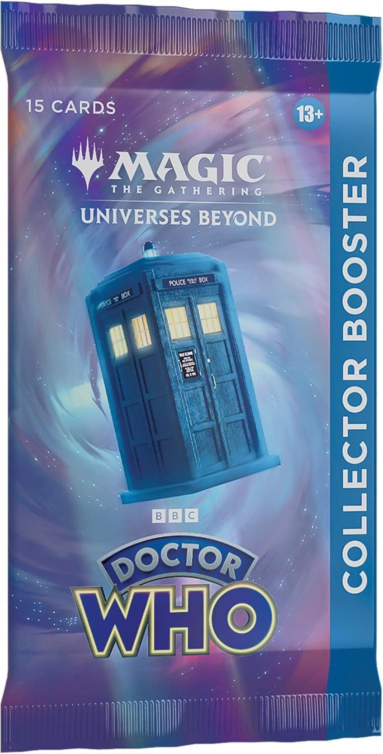 When you crack into one of these Doctor-approved Collector Boosters, you’ll find cards from classic and modern Doctor Who—serving fans the most fantastic moments, characters, and places from throughout the beloved BBC series’ history. Every pack contains cards with special treatments that celebrate what makes the show so iconic, including 2 Showcase TARDIS cards (featuring alternate-art and TARDIS-inspired frames), 6–7 Extended-Art cards (frameless cards that show off a card’s artwork in its full glory), tons of Rare cards, and more shiny foil cards than you can shake a sonic screwdriver at, including at least 3 of a special foil type—Surge Foil cards. Each Doctor Who Collector Booster contains 15 Magic: The Gathering cards, with a total of 12 foil cards (3–10 Surge Foils and 2–9 Traditional Foils) and 1 Surge Foil or Traditional Foil double-sided token. Every pack includes a combination of 7–14 cards of rarity Rare or higher and up to 7 Uncommon, up to 5 Common, and 1 Land cards. This page has been edited to clarify packaging information.