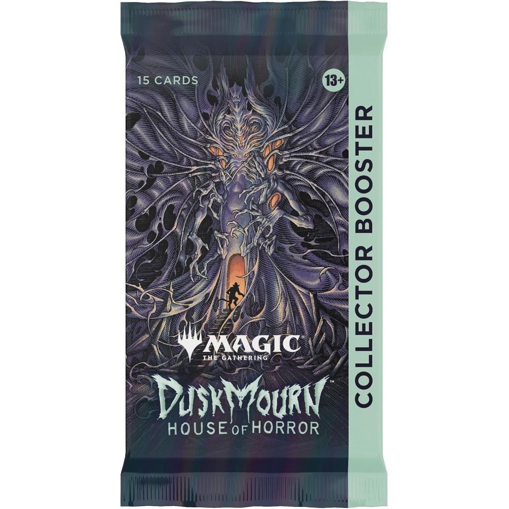 Unlock Duskmourn’s gallery wing and claim the House’s greatest treasures before the House claims you! Each spirit-busting Collector Booster contains Rares and/or Mythics, Traditional Foils, Borderless cards, and Full-Art Lands. In this box you’ll find 12 Duskmourn: House of Horror Collector Boosters, each containing 15 Magic: The Gathering cards and 1 Traditional Foil double-sided token. Every pack contains 5 cards of rarity Rare or higher, 4 Uncommon, 5 Common, and 1 Land cards, with a total of 11–13 Traditional Foil cards.