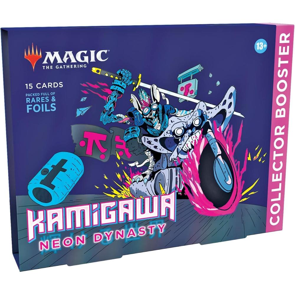 Enhanced with cutting-edge booster technology, the Kamigawa: Neon Dynasty Collector Booster contains 15 Magic: The Gathering cards and 1 traditional foil double-sided token, with a combination of 5 cards of rarity Rare or higher, 2–7 Uncommons, 2–7 Common cards, and 1 Land card. Every pack includes a total of 4–6 Showcase, 1–3 Extended-Art, and 0–3 Borderless cards, with 0–1 Neon Ink Foil or Foil-Etched card (Neon Ink Foil card in <1% of Collector Boosters), and 9–10 traditional foil cards.