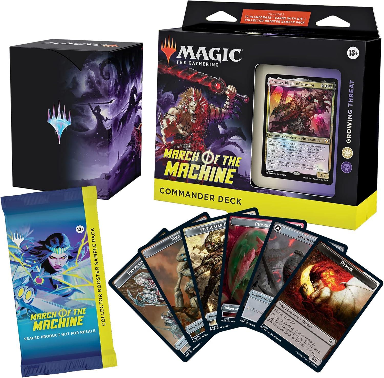 Magic The Gathering March of the Machine Commander Deck - Growing Threat (100-Card Deck, 10 Planechase cards, Collector Booster Sample Pack + Accessories)(Commander Deck 1)