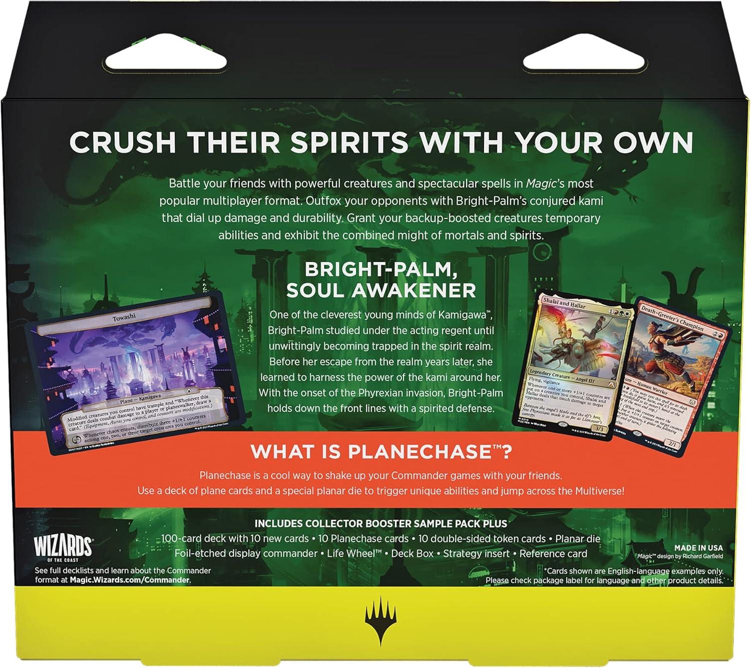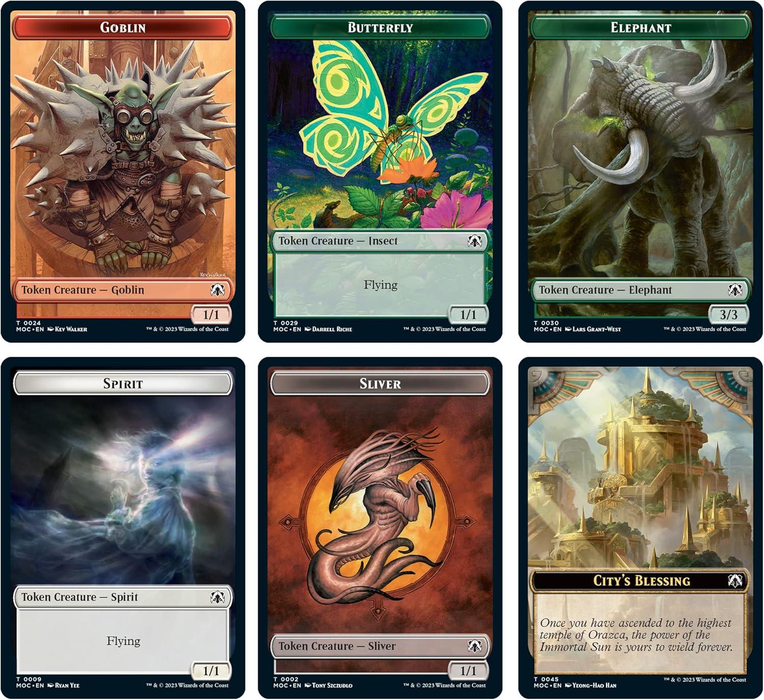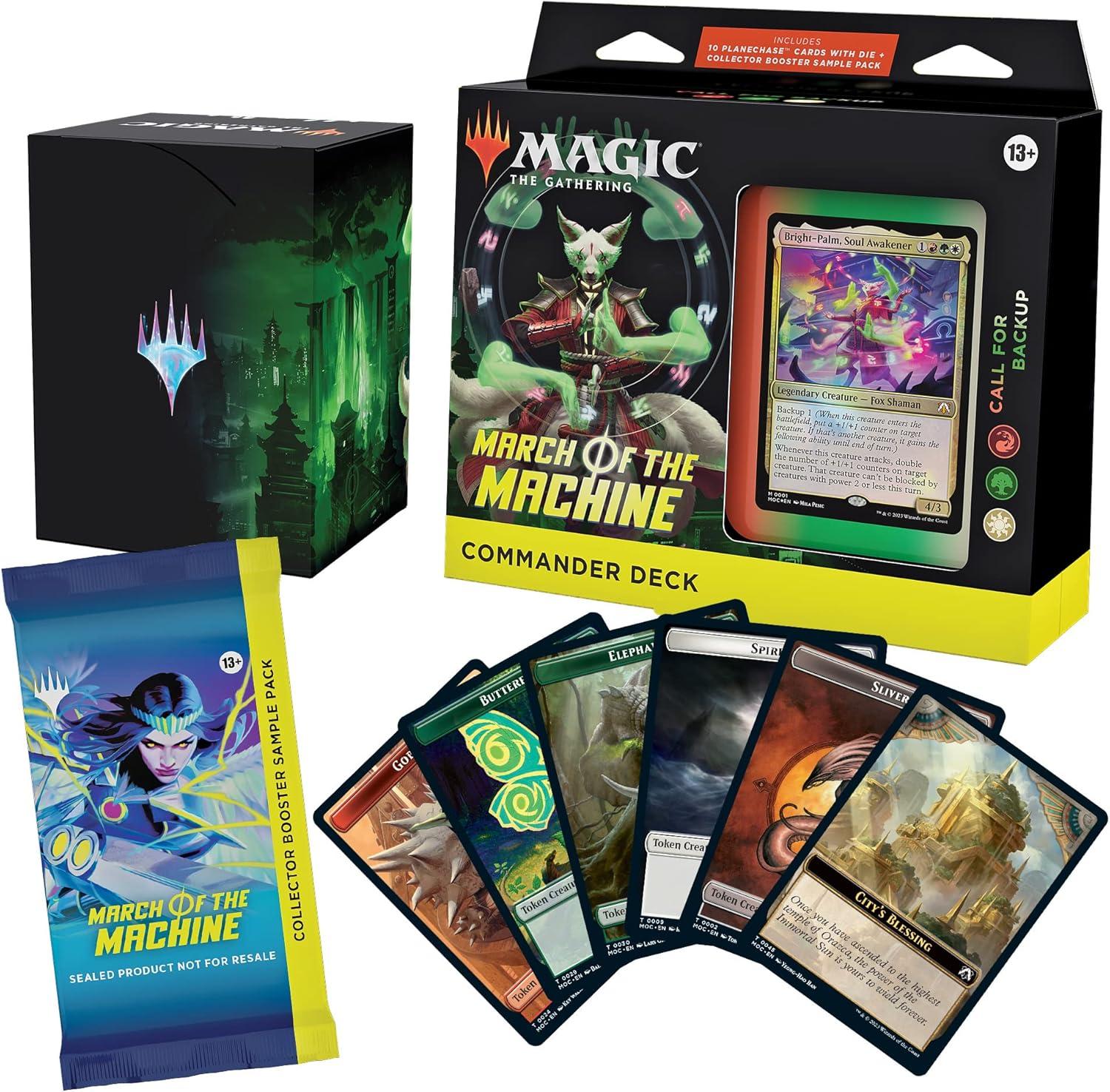 The Growing Threat March of the Machine Commander Deck set includes 1 ready-to-play White-Black deck of 100 Magic cards (2 Traditional Foil Legendary cards, 98 nonfoil cards), 10 Planechase cards, 1 six-sided planar die, a 2-card Collector Booster Sample Pack (contains 1 Traditional Foil or nonfoil special treatment card of rarity Rare or higher and 1 Traditional Foil special treatment Common or Uncommon card), 1 Foil-Etched Display Commander (a thick cardstock copy of the commander card with foil etched into the card’s border and art), 10 double-sided tokens, 1 deck box (can hold 100 sleeved cards), 1 Life Wheel, 1 strategy insert, and 1 reference card.