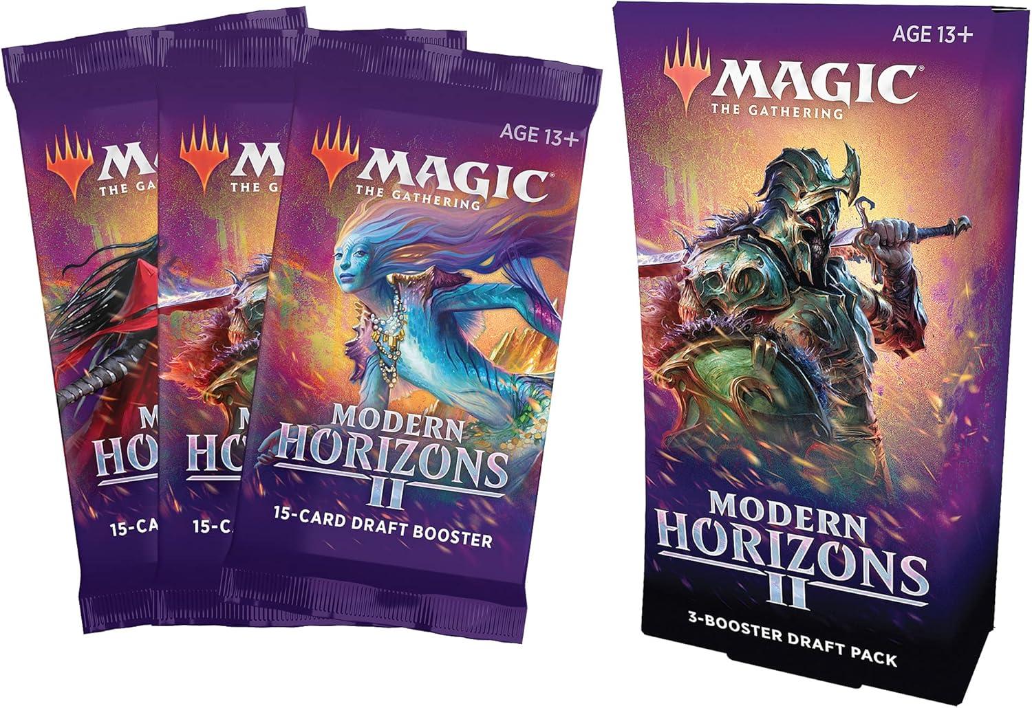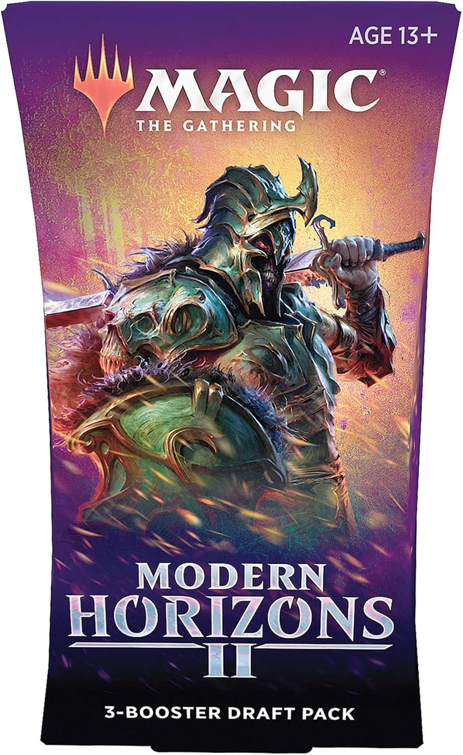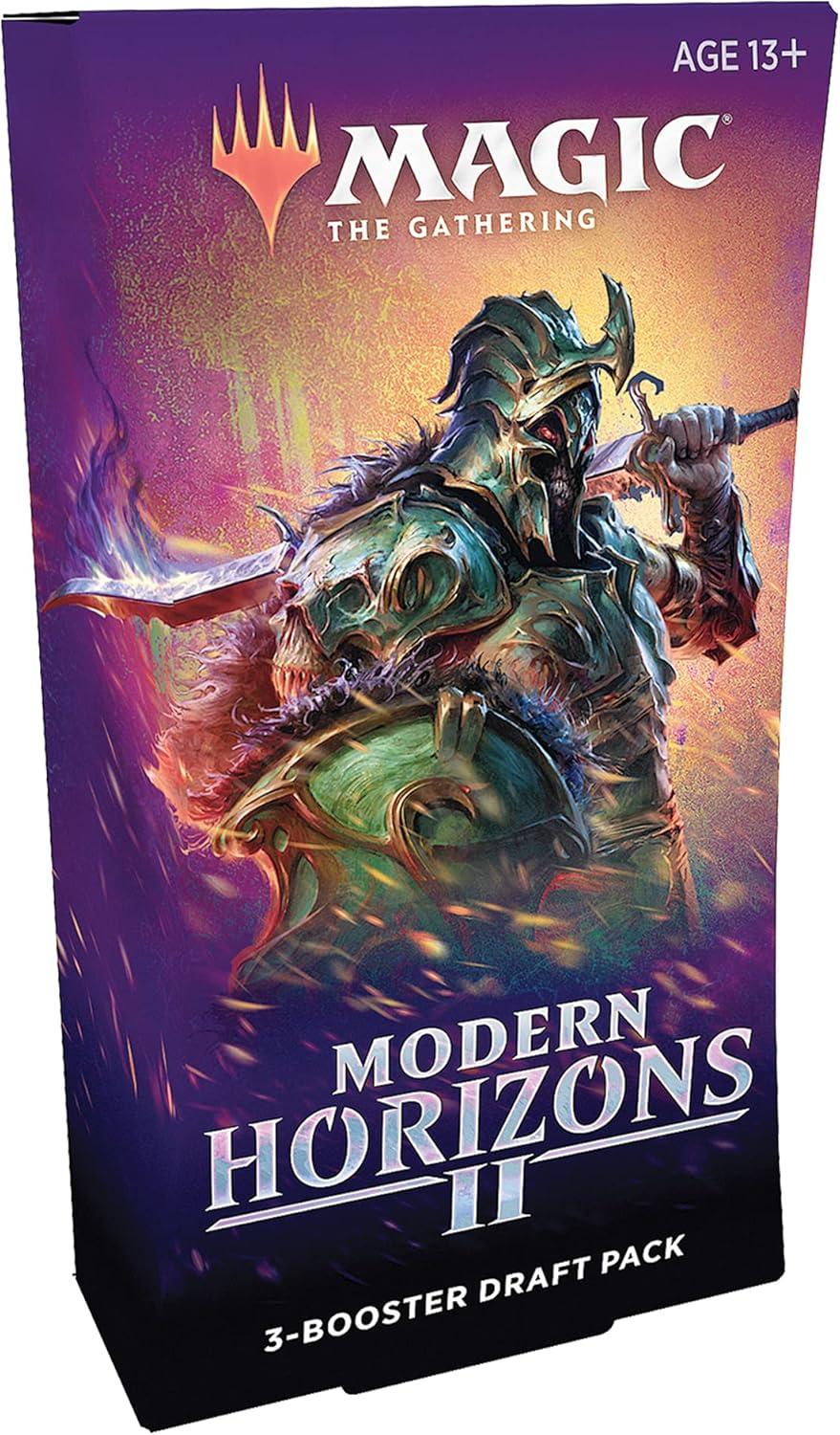 The Modern Horizons 2 Draft Multipack contains 3 Modern Horizons 2 Draft Boosters. Each Draft Booster contains 15 Magic cards and 1 token or ad card, with a combination of 1–2 Rares and/or Mythic Rares, 3–4 Uncommons, and 10 Common cards. A traditional foil card of any rarity replaces a Common in 33% of Modern Horizons 2 Draft Boosters. Traditional foil Retro-Frame Fetch Land in less than 1% of boosters.