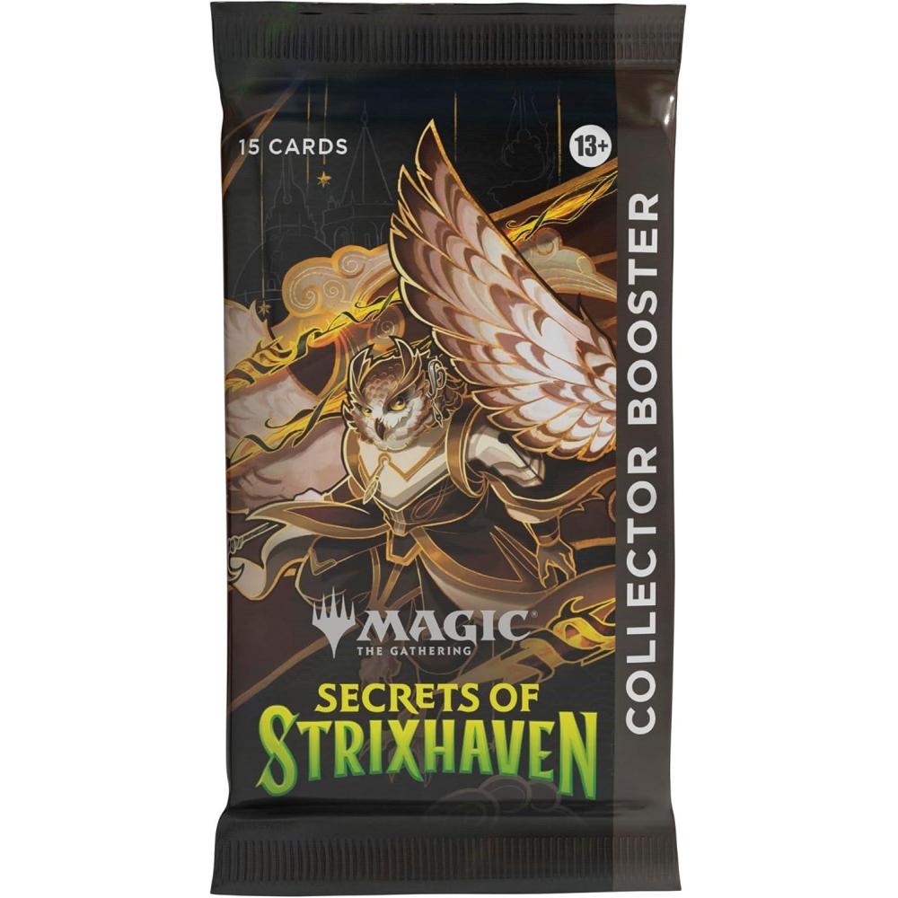CONTENTS—1 Secrets of Strixhaven Collector Booster containing 15 MTG cards and 1 Traditional Foil double-sided token.