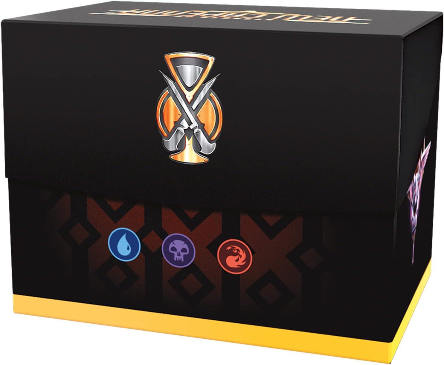 The Maestros Massacre Streets of New Capenna Commander Deck set contains 1 ready-to-play Blue-Black-Red deck of 100 Magic cards (2 traditional foil, 98 nonfoil), a 2-card Collector Booster Sample Pack, 1 foil-etched Display Commander (a thick cardstock copy of the commander card with foil etched into the card’s border and art), 10 double-sided tokens, 1 counter punchout card, 1 deck box (can hold 100 sleeved cards), 1 life tracker, and 1 reference card. Every Collector Booster Sample Pack contains 1 traditional foil Showcase Uncommon or Common card and 1 traditional foil or nonfoil alternate treatment card of rarity Rare or higher).